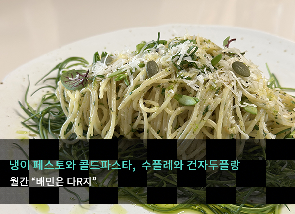 월간 “배민은 다R지” _냉이 페스토와 콜드파스타_수플레와 건자두플랑