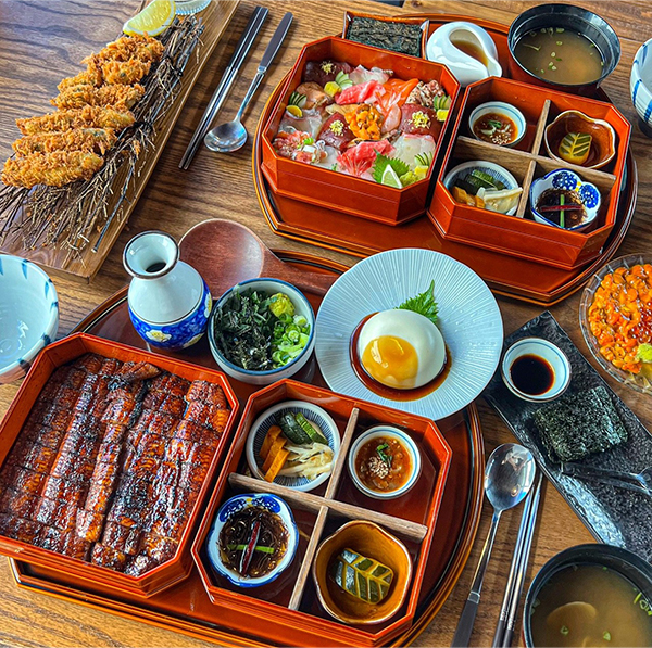 민물 장어에 특제 양념을 더해 숯불에 3번 구워 풍부한 훈연향과 함께 푸짐하게 제공되는 대표 메뉴 히츠마부시를 비롯해 찬합에 제공되어 포토제닉한 담음새를 자랑하는 카이센동도 인기.