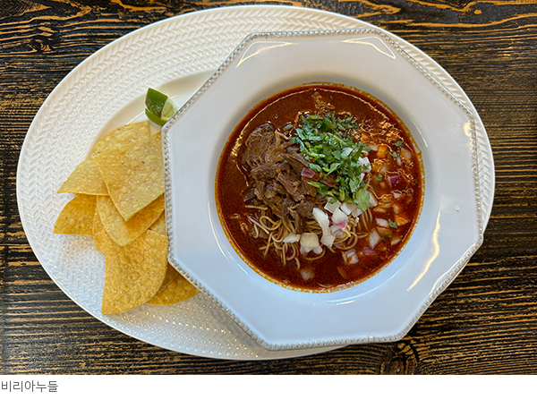 흔치 않은 경험을 원하는 미식가들에게 ‘비리아 누들’은 강력 추천 메뉴다. 비리아 소스 베이스와 진한 육수, 에그누들이 조화를 이룬 매콤 새콤한 한 그릇으로 특히 깊은 국물요리를 사랑하는 한국인들의 취향 저격 메뉴다.