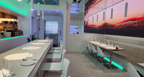 이런 분위기 건물이라면 MZ세대에게 어필할 만한 생면 파스타나 스페인 타파스 등 이국적인 소재의 외식 공간이 있을 것 같은데 4층 레스토랑은 여느 한식당보다 더 제대로 된 우리 한식의 깊은 매력을 품어내는 ‘블그레’가 자리하고 있다. 블루, 그린, 레드의 조합으로 만든 블그레는 빛의 3원색의 교집합인 화이트로 꾸며져 천정과 벽면 모두 새하얗다. 이런 인테리어에서 만나게 될 한식이라니, 무척 궁금해진다.