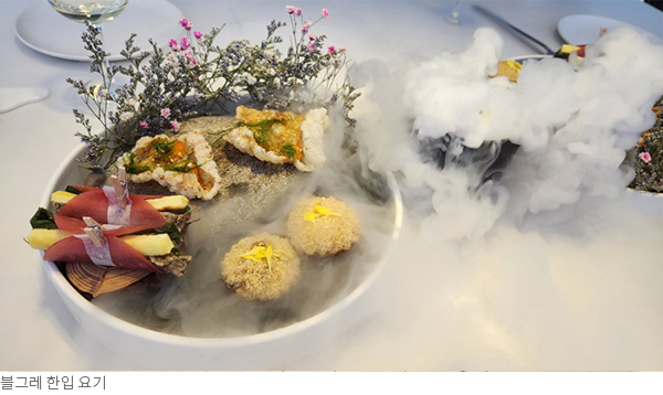 공부꾼 셰프다! 그것도 모자라 향후 시골에서 팜투테이블(Farm to Table) 맛집의 꿈을 실현하고자 귀촌 학교를 다니며 농업현장의 생리까지 익혔다. 그런 열정이니 블그레에서는 우리 음식은 물론이고 전통주와의 어울림 시도가 다양하다. 최근엔 지역의 음식 명인을 모셔와 김셰프와 함께 쿠킹클래스 또는 식문화 만찬도 열고 있다.