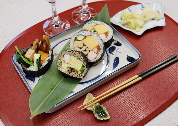 수업은 쿠킹 시연과 시식 및 페어링의 순서로 진행되었으며 특색있으면서도 자극적이지 않고 여름에 어울리는 요리들로서 다양한 응용과 경쟁력을 갖춘 메뉴로 구성됐다. 스시야 뿐만 아니라 일상 속에서 자주 접하게 된 일본 ‘후토마끼’ 강의에서는 후토마끼의 기본이 되는 맛있는 샤리(밥)를 짓고, 항기리(초밥을 섞고 식히는 나무통)에서 샤리 식초로 간을 하는 법, 후토마끼에 들어가는 고야두부조림, 박고지조림, 표고버섯조림, 아쯔야끼다마고(달걀구이), 아나고조림 등 전통적인 식재료와 조리법을 익히고 응용하는 법을 세세하게 전수했다.