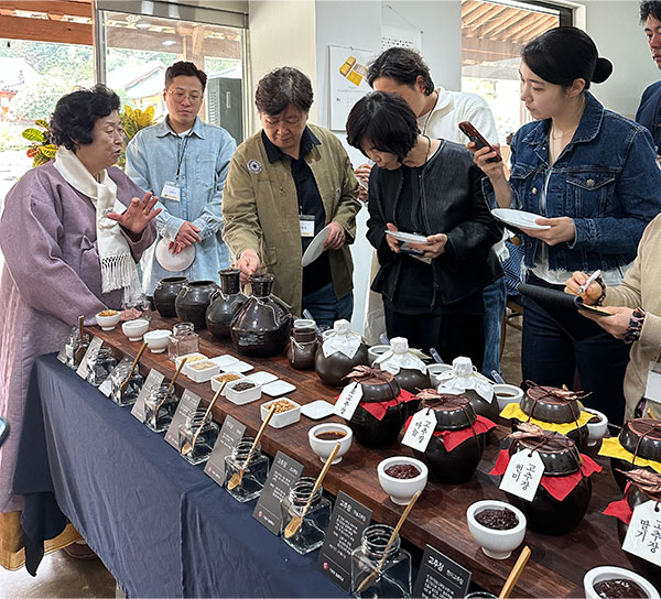 기순도 전통장이 익어가는 담양 창평면 유천리 마을에 자리한 종가집의 고택과 토종 소나무를 배경으로 빼곡하게 장독대가 펼쳐진 그림같은 풍광은 귀한 맛의 발자취를 따라 방문한 교육생들에게 선사하는 귀한 선물이다.