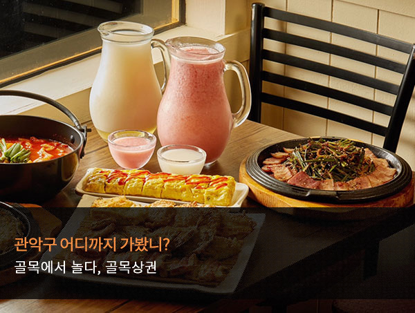 샤로수길로 알려진 골목 이외에도 최근 활발한 관악구의 대대적인 지원과 상인들의 부단한 노력이 어우러져 곳곳에 매력적인 골목상권이 눈에 띄고 있습니다.