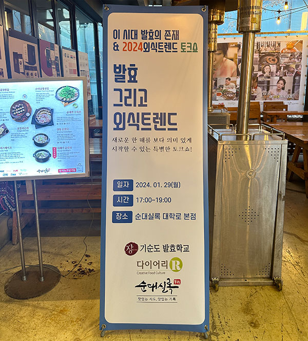 ㈜다이어리알은 대한민국 식품명인이자 350년 종가에서 내려오는 전통 발효의 비법으로 우리나라를 대표하는 장을 세계에 전파하는 고려전통식품의 기순도 명인님과 지난해 첫 발을 뗀 기순도 발효학교를 통해 맺은 발효 인연을 외식 상품으로 풀어 세계 무대에 한국의 순대를 알리는 일을 하고있는 희스토리푸드(순대실록) 육경희 대표님과 콜라보하여 #발효그리고외식트렌드 라는 이름의 토크쇼 겸 팝업을 진행했다.