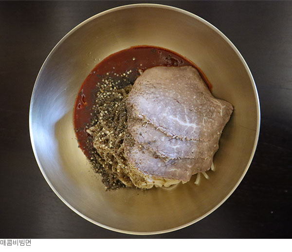 또한 저가수 방식으로 최소한의 수분을 사용하여 강한 압력으로 제면하여 고유한 질감이 살아있으며 곁들이는 양념이 겉돌지 않고 알맞게 배어들어 간결하게 쓰인 재료 각각의 맛을 보다 풍부하게 느낄 수 있도록 한다.