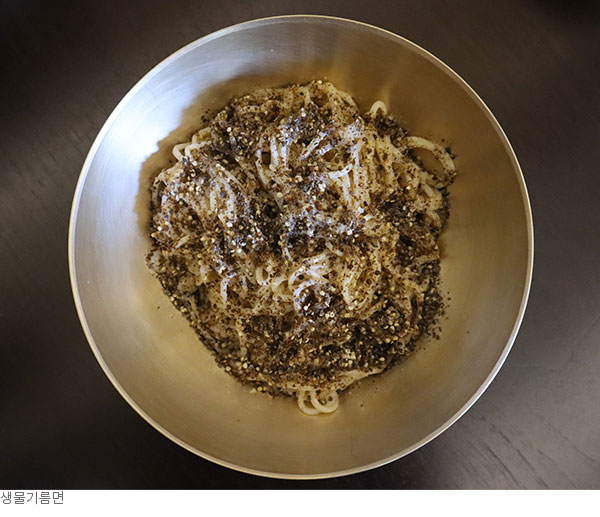 가게의 이름처럼 다양한 면 요리를 맛볼 수 있는데 시그니처로 통하는 것은 ‘생들기름면’이다. 볶지않고 45도에서 냉압착하여 추출한 충남 예산의 매헌 생들깨기름과 고소하게 씹히는 통들깨, 표고버섯으로 맛을 낸 메뉴로 담음새는 심플하나 각각의 재료가 뿜어내는 풍미는 풍요롭기 그지없다.