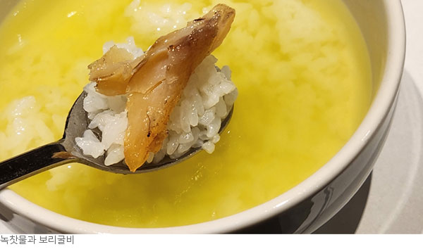 따뜻한 밥을 녹차물에 말아 보리굴비 한 점 올리면 행복 지수가 가득 차오른다.