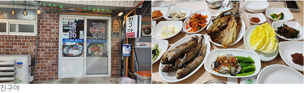 영광 법성포에 가면 조기 판매업소와 식당이 즐비하다. 너무 많아서 결정 장애가 발동될 정도다. ‘친구야’는 법성면사무소 앞에 있는 소박한 식당이다. 전라도 가정집 상차림처럼 밑반찬이 푸근하고 정갈하다.