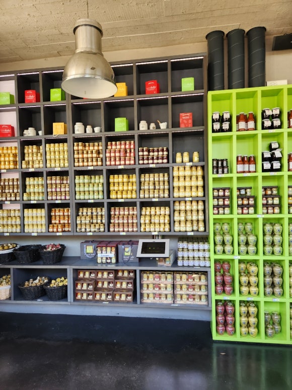 1840년에 설립된 '에드몽 팔로(Edmond Fallot)'는 부르고뉴 지역에서 유일하게 석재 맷돌(Stone mill)을 이용해 겨자씨를 직접 갈아 만드는 전통 방식을 지켜오고 있다. 겨자씨도 지역 고유 종자를 사용하며, 이곳은 단순한 생산 공장을 넘어 하나의 미식 체험 공간으로 자리잡았다. 공장 투어를 신청하면 해설사의 안내에 따라 공정 과정을 견학할 수 있고, 다양한 응용 머스터드를 시식할 수 있다. 바질, 타라곤, 꿀, 발사믹, 블랙커런트 등 독특한 조합이 인상적이다. 수도꼭지처럼 생긴 디스펜서를 통해 생머스터드를 항아리에 담아가는 체험도 또 하나의 즐거움이다.