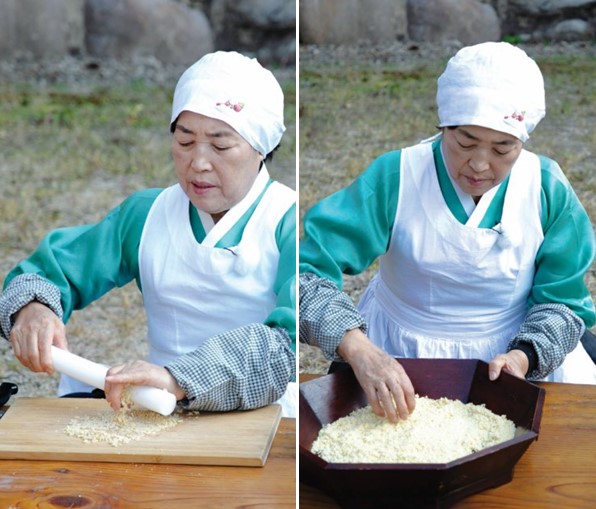 이연순 명인: 중학교 2학년 때 할머니가 돌아가셨고, 이듬해 제천으로 이사했어요. 스무 살 무렵부터 어머니를 제대로 도우며 손맛을 익혔죠. 결혼 후 아이들을 키우다 떡을 만들어 판매하고, 제천 자활센터 등에서 강의도 했습니다. 그때 제 제자가 지금 제천에서 떡 베이커리로 성공해, 큰 보람이 되었고요.
