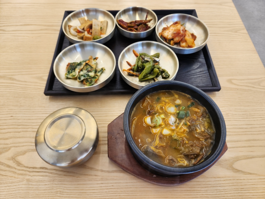 서래마을에 새롭게 문을 연 한식집. 오픈한 지 얼마 안 되어 ‘점심 특선 한우육개장’이 종이 현수막으로 걸린 모습에 점심 영업을 위해 급조한 메뉴일 수도 있다는 생각으로 반신반의하며 방문했다. 곁들이로 나온 다섯 가지 찬은 소박하지만 자극적이지 않았고 육개장 자체의 담백한 자태가 집에서 끓여낸 듯 차분하다. 한 숟가락 뜨니 곧이곧대로의 소고기 육수. 고비·무·파·숙주가 듬뿍 들어 있고 양지머리는 잘 찢어진 상태로 올려낸다. 요란한 외식형 육개장들이 범람하는 요즘, ‘육개장의 정석은 이렇다’라고 말하는 듯한 맛. 겉과 속이 고르게 어우러지는 ‘문질빈빈(文質彬彬)’이라는 글귀가 떠오른다.