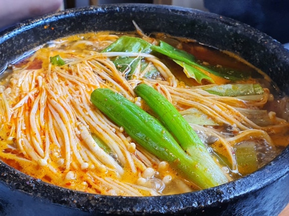 순한 붉은빛 버섯육개장