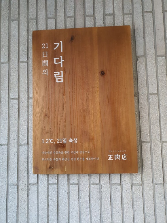 “21일이 지나면 애인은 오지 않고 잘 숙성된 고기가 온다.” 바로 이곳에서는 1.2℃에서 21일간 숙성한 고기를 제공하는 것을 모토로 하고 있다. 숙성되는 고기 덩어리들을 투명 냉장고에서 볼 수 있게 전시해 놓은 것부터 고객들을 압도한다. 그런 숙성육이 육개장에도 들어가는지 고기가 유난히 부드럽고 대파의 단내와 감칠맛이 또렷하다.