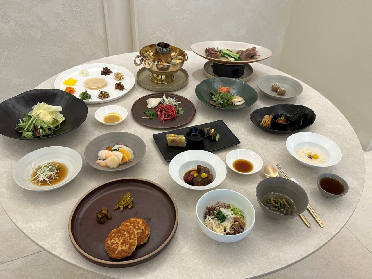 지미원은 궁중요리와 반가음식, 그리고 군산이라는 도시의 역사·발효·풍요를 한 상에 담아내는 공간으로 계절의 흐름과 지역 식재료를 고려한 상차림이 특징이다. 먼저 구절판과 여러 밑반찬이 남다른 기품을 보여준다. 은은하게 빛나는 유기그릇, 약고추장부터 고춧잎·셀러리 장아찌, 홍시로 맛을 더한 묵은지까지... 품위 있는 전통 한정식의 품새가 그대로다. 연자육과 밤으로 만든 죽은 며칠을 끓였다 식히기를 반복해 얻은 부드러움이며, 민물새우탕은 무즙의 순수한 단맛이 스며들어 정갈하고 단아한 맛을 낸다. 능이버섯 찰전병과 자연산 버섯전골은 육수까지 정성과 시간이 들어간 깊이를 보여준다. 군산 특산 갈치식해와 밴댕이젓, 4~5년 된 파김치와 깻잎장아찌는 향토성과 발효의 진수를 담고 있다. 마지막으로 거피한 깨강정과 오미자차로 입안을 정리하며 한 끼를 마무리할 수 있다. 유 대표는 음식을 내올 때 그 유래와 맥락을 직접 설명하는 것으로도 잘 알려져 있다. 이를 통해 식사를 궁중음식의 역사·조리철학·재료의 배경을 함께 체험하는 시간으로 확장시킨다.