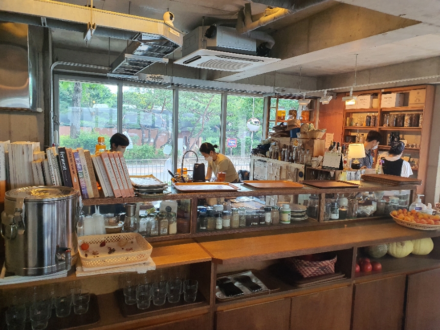 서울 궁정동 사회주택 1층에 자리한 ‘큔(Qyun)’은 이름 그대로 전통적 발효의 핵심인 미생물의 연속성과 생명력을 뜻하는 ‘균(菌)’을 중심에 두고 제철 채소와 발효의 미학을 전하는 카페 & 식료품 상점이다. 이곳은 전국 농부들로부터 공수한 제철 채소에 직접 만든 발효 소스와 버터, 페이스트를 더해 담백하지만 감칠맛 깊은 한 끼를 선보인다. 대표 메뉴인 ‘구운 채소와 비건 발효 버터 커리’는 두유 요거트와 채수, 템페를 더한 토마토 베이스 커리로, 템페의 고소한 식감이 제철 채소와 어우러져 동물성 재료 없이도 깊은 풍미를 만든다. 철마다 우리 땅에서 제철 재료와 발효를 이용해 만든 ‘제철 비건 아이스크림’도 별미다. 토종 조선생강으로 발효 후 향신료와 함께 끓여낸 진저 발효 시럽, 누룩소금으로 발효한 바냐카우다 소스 등 식료품도 판매한다.