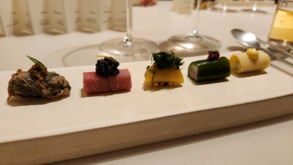 캐비어와 동치미가 나란히 등장하고, 우니 국수에는 스모크 간장이 이어진다.