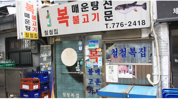 30여 년간 복요리로 전통을 이어가고 있는 곳으로 복지리와 복매운탕, 복불고기가 대표적이다. 내부는 다소 허름한 편이나 직장인들과 주당들로 항상 붐비는 곳이다. 새콤한 양념에 미나리와 함께 무쳐서 내는 복껍질무침은 입맛 돋움용으로 제격이다. 소금으로 밑간을 해서 먹는 복소금구이가 인기메뉴로 숯불 위에 석쇠를 올리고 노릇하게 구운 후 간장 소스를 곁들여 먹는데 짭짤한 맛과 복고기의 탄력적인 씹는 맛이 잘 어우러진다. 복불고기는 양념되어 나오며 복지리는 해장용으로 탁월하다. 이곳의 복요리를 제대로 즐기고 싶다면 소금구이, 불고기, 지리 순으로 주문할 것을 추천한다.