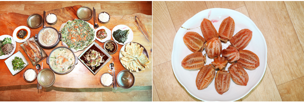 저수지에서는 잉어와 붕어도 뛰놀고 있어 볼거리도 많다. 건강한 나물과 바다 내음 간직한 해산물이 가득한 상차림을 내기도 하고 앞에서 잡아 올린 물고기를 찜으로 내기도 하니 그야말로 ‘만점’이다.