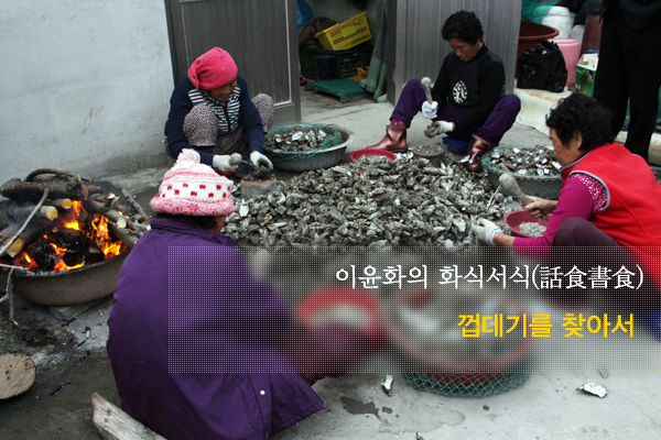 고흥 피굴에 푹 빠져 버려서 결국 굴껍데기 삶는 법을 훔치게 되었다. 그리고 그것이 나의 새로운 대단한 발견인양 서해안 춘장대 해수욕장 근처의 음식으로 다시 태어나게 해주었다. 그곳은 매서운 겨울 칼바람이 불면 ‘야, 추워서 정말 좋다!’라고 말하는 김 양식업을 하는 사람이 많이 살고 있는 곳이다. 김양식은 겨울엔 겨울답게 아주 추워야 제격이기 때문이다. 이곳에서 물에 쓸려갈 것 같은 부들부들하고 거무죽죽한 김풀을 김발에 널어 마른 김으로 되는 것도 체험하게 되었다. 도시에서는 김국을 끓여도 마른 김을 부스러뜨려 끓이곤 하는데 이곳에서는 산지의 잇점으로 生물김을 이용하여 국을 끓일 수 있다. 생김국이 생소하다면 요즘 도심에서 잘나가는 한식집에서 겨울에 파는 매생이국을 연상하면 된다. 김국을 만드는데 문제는 육수였다. 生김을 더 시원하게 할 수 있는 방법을 고민하다 여기에 고흥의 피굴 만드는 식으로 굴껍데기 삶은 국물을 응용하게 되었다. 반응이 참 좋았다. 식당 사장은 흥이 났다. 왜? 굴껍데기는 원가가 없는, 즉 버려지는 재료를 깨끗이 씻어 육수를 내면 되니 이 얼마나 신통한 일인가? 서산해안가에서 바닷물을 파는 바닷물자판기를 보고 현대판 봉이 김선달이라는 별명을 지어 주었는데, 버려진 굴껍데기 육수 또한 원가 절감 면에서 상당히 매력적일 수밖에 없었다.