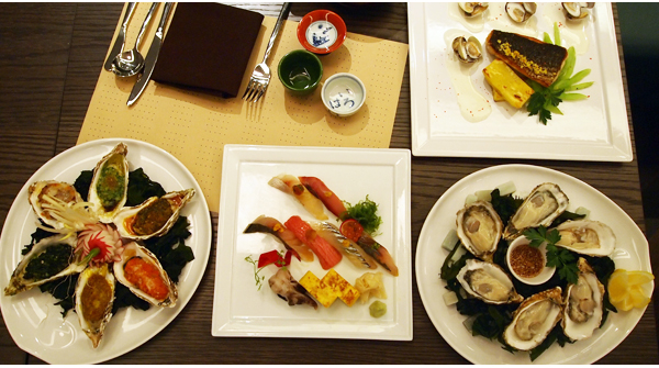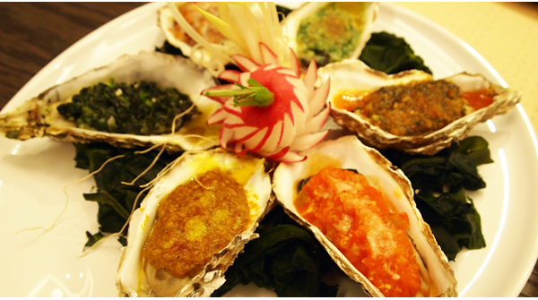 우선 이곳을 제대로 만끽하고 싶다면 우선 생굴로 입맛을 돋운 후 프렌치나 스시 요리를 즐겨볼 것을 권한다. 굴 종류는 세 가지가 마련되어 있다. 국내에서 굴 산지로 가장 대표적인 경남 통영과 전남 고흥, 그리고 요즘 각광 받고 있는 서천 갯벌 굴이다. 일명 오솔레라고도 불리는 이 굴은 본디 프랑스 품종으로 국내에 도입 된지는 그리 오래지 않았지만 사계절 내내 생굴을 즐길 수 있다는 점에서 매력적이다. 또 양식할 적에 수평망방식이라 하여 햇볕과 물을 충분히 공급받기 때문에 더욱 진한 풍미가 느껴진다.