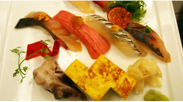 스시는 새조개, 참치뱃살, 소돔, 삼치, 방어, 전갱이 등 신선한 횟감을 이용해 잡아주는데 정통 에도마에 방식을 따르고 있는 것이 특징이다. 에도마에 방식은 밥을 쥘 적에 밥 알 사이마다 일정한 공간을 두고 있어 입에 넣으면 횟감과의 조화를 이룬다. 또 양면젓가락을 제공하고 있어 생선 종류마다 본연이 갖고 있는 맛을 제대로 느껴볼 수 있도록 했다.