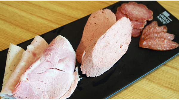 돼지는 충청북도 소재의 농가에서 공수 받는다. 특히 다른 부위에 비해 활용도가 적었던 돼지 뒷다리를 이용한다. 돼지뒷다리는 본래 고단백, 저지방질 부위로 햄이나 소시지로 활용하기에 적합하다. 순수 원육만을 이용하며 일반적으로 햄을 만들 때 들어가는 각종 방부제나 밀가루, 전분 등을 일절 금하고 있다. 원육과 함께 맛을 낼 수 있는 향신료 정도만 첨가하기 때문에 맛의 깊이와 질감이 남다르다. 전분, 밀가루가 들어간 일반 햄이 퍽퍽한 맛이 있다면 어반 나이프에서 생산되는 제품은 탱글탱글한 식감이 있다.