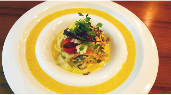 전채요리로 즐길 수 있는 버섯냉채는 크림소스를 곁들여 낸다. 버섯은 계절 버섯으로 느타리, 새송이, 목이, 백만송이 등을 사용한다. 소스에는 깊게 우려낸 육수에 겨자 등을 함께 첨가해 만드는데 겨자의 알싸한 맛과 부드러운 크림 맛이 잘 어우러질 뿐만 아니라 새콤하니 입맛을 당긴다. 메인 요리 격인 떡갈비는 고기와의 밸런스를 맞출 수 있도록 인삼 소스를 준비했다. 수원농장에서 보내온 연 잎은 삼각김밥 모양의 연잎밥으로 만들어진다. 잡곡의 종류만 해도 16가지 가까이 들어가는데 은은한 연잎향이 고루 베어 들었다. 밥맛 또한 남다르다. 묘하게 감칠맛이 느껴지는데 이는 밥을 지을 때 팥을 베이스로 한 육수를 넣어 짓기 때문이다.