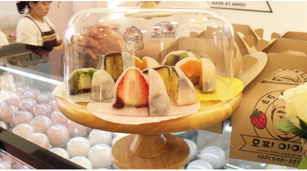 신선한 생과일이 통째로 담긴 이색 모찌를 맛볼 수 있는 곳이다. 딸기, 키위, 청포도, 바나나, 귤 등 생과일을 통으로 준비한 후 달콤한 팥 앙금을 넣고 찹쌀떡을 입혀서 만드는데 쫀득쫀득함과 과일의 상큼함을 동시에 즐길 수 있다. 특히 이곳의 모찌는 반으로 갈라서 먹는 것이 포인트로 속 안의 화려한 자태가 더욱 식욕을 자극한다. 찹쌀떡을 얇게 입혀 만들기 때문에 과일 본연의 맛을 제대로 느낄 수 있는데 특히 분홍빛의 단아한 자태를 뽐내는 딸기모찌는 새콤달콤한 맛으로 모든 연령층에게 인기가 좋다. 정오와 오후6시는 모찌가 나오는 시간으로 하루에 한정된 수량만을 판매하니 전화 확인 후 방문할 것.