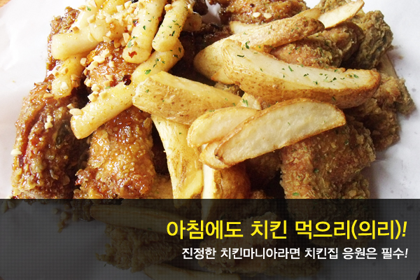 아침에도 치킨 먹으리(의리)! 진정한 치킨마니아라면 치킨집 응원은 필수!