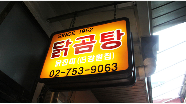 02-2274-2415 / 서울시 중구 인현동 1가 24-2 / 오전11시-밤10시30분, 일요일휴무 / 닭곰탕•닭칼국수 각 5천원씩