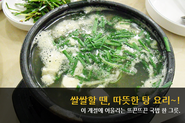 쌀쌀할 땐, 따뜻한 탕 요리~! 이 계절에 어울리는 뜨끈뜨끈 국밥 한 그릇.