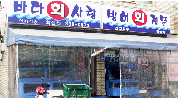 서울에서는 보기 드문 방어를 합리적인 가격으로 즐길 수 있어 주당들의 아지트로 통한다. 국내산 광어와 우럭을 비롯하여 활어를 전문으로 하며 계절 메뉴인 민어회와 감성돔, 숭어, 놀래미 등의 생선회도 두루 선보인다. 아나고, 멍게, 소라 등의 해산물도 다양하게 취급한다.