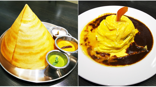 드레스 오므라이스도 인기메뉴다. 익히 알고 있듯 계란 옷을 입은 오므라이스인데 이름처럼 주름 잡힌 드레스 모양이 돋보인다. 부드럽게 풀어 익힌 계란과 데미그라스소스, 굴소스 등이 어우러져 감칠맛을 배가 시킨다. 고깔 형태의 ‘도사’는 인도 남부지역의 대표 요리다. 인도식 크레페 요리라 할 수 있는데 멥쌀과 녹두를 이용해 숙성한 반죽을 부쳐 만든다. 곁들이는 소스는 세가지가 제공된다. 코코넛쳐트니와 민트소스, 삼발소스로 취향 것 맛보면 된다.