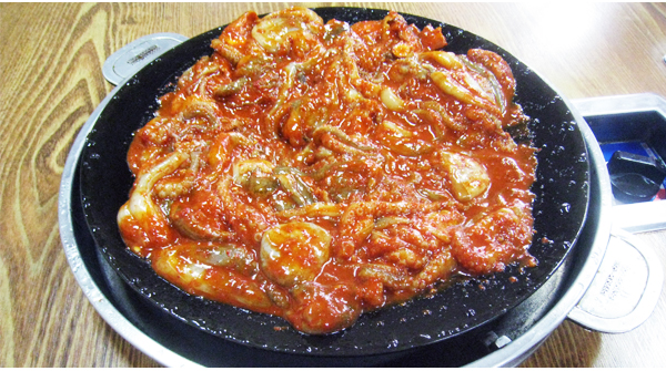 마포구 갈비골목에 주꾸미 맛을 제대로 맛볼 수 있는 숨겨진 맛 집이다. 6시 이후엔 자리가 없어 줄 서서 기다릴 정도로 단골고객층이 두터운 곳이다. 신선한 주꾸미를 사용하기 때문에 살이 연하면서도 씹히는 맛이 부드럽다. 이곳은 특이하게 주꾸미를 앞 뒤로 구운 김과 함께 먹는데 반찬으로 나온 부추, 마늘, 고추와 싸서 먹으면 기다린 시간이 아깝지 않을 만큼 궁합이 잘 맞는다. 보다 든든하게 즐기려면 해물된장찌개를 추가로 주문하기도 하니 함께 먹는 것도 좋다.