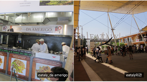 엑스포장의 이탈리는 총 1600㎡의 부지에 단독 전시관을 설치하여 매달 이탈리아에 있는 14개의 레스토랑이 교체되어 들어와 운영을 한다. 엑스포 기간 동안 총 84개 이탈리아 각주의 유명 레스토랑이 제공하는 특별 콜라보레이션이 일어나는 다이닝공간이다. 좌석 수는 총 1500 석으로 7월 방문했을 때는 에밀리아 로마냐(Emilia Romagna)주의 레스토랑 “Da Amerigo”의 볼로네제 파스타를 맛볼 수 있었다.