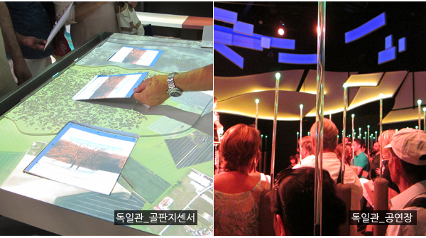 독일관의 컨셉은 “Fields of Ideas(생각의들판)”이다. 독일관 입장시 A4크기보다 작은 골판지를 나누어준다. 전시 내내 이 골판지가 얼마나 유용하고 신기한지 모른다. 골판지에는 ‘Seeboard´라는 센서가 부착되어 있어, 섹션마다 골판지를 대면 페이지가 넘어가고 상하로 움직이며 화면이 변화된다.