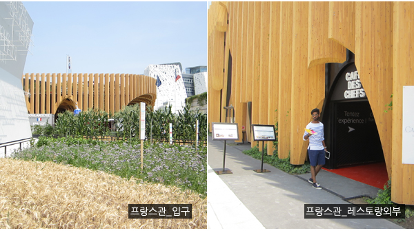 허브, 토마토, 가지, 호박, 보리 등의 각종 채소로 장식된 정원을 통과하면 드디어 프랑스관 입구가 나온다. 파리를 연상하면 첨단 패션의 도시 이미지가 떠오르지만 프랑스 전역을 보면 진정한 농업 기반 국가임을 알게 된다. 우리가 먹는 식재료는 어디에서 왔는가에 대한 질문과 해답을 던져준다.