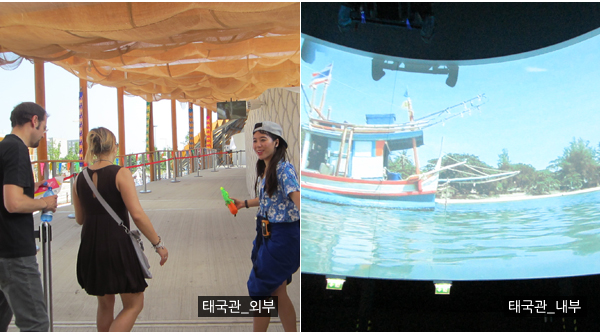 쌀에 대한 오랜 전통과 풍부한 식습관을 보유한 태국은 짧은 시간 내 목적을 확실히 전달하고 있다. ‘지속가능성과 생명의 균형’에 입각한 태국 국왕의 농민을 위한 노력, ‘전통, 품질의 근원’에 대한 태국 농산물과 쌀의 경작의 기원, ‘미각거리와 태국의 맛’에 대한 것을 한 공간에 모아 놓고 차근차근 보여준다. 마치 옛날극장에서 봤던 대한뉴스 태국버전을 보고 온 듯한 기분도 든다. ‘템플, 타이, 푸드, 페스티발’의 영상은 방콕이 ‘동쪽의 베니스’라는 옛 추억을 떠올려 커다란 플로팅마켓을 재현해 보이는 것 같았다.