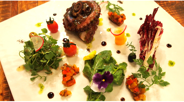 문어샐러드는 누구나 입을 모아 칭찬할 정도. 동해 참문어를 라따뚜이와 루꼴라, 라디치오 등과 함께 낸다. 문어에는 바질 오일을 바르고 그릴에 한번 구워냈고, 샐러드는 참깨소스가 뿌려져 있어 메인 식사 전 입맛을 돋우기에 더할 나위 없다.