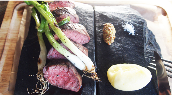 토시살 스테이크는 셰프가 추천하는 메뉴. 철평석 플레이트 위에 스테이크가 올라가는데 열에 강한 철평석 덕분에 고기의 온기가 유지된다. 메쉬 포테이토와 구운 파가 가니쉬로 올라간다. 횡경막의 일부로 팔에 끼는 토시처럼 생겼다 하여 토시살이라 부르는 이 부위는 쫄깃하면서도 담백한 맛이 있다. 기름진 부위를 싫어하는 여성 손님들이 선호하는 메뉴 중 하나다.