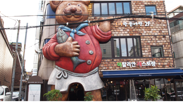 가로수길을 자주 거닐었다 하는 사람들은 최근 지어진 한 건물을 기억할 것이다. 큰 레스토랑이 바로 그 것인데 조리복을 입은 콧수염의 곰 조형물이 멀리서도 눈에 띈다. 건물 3층 높이 곰의 키가 어찌나 큰지 지나가는 이들도 걸음을 멈추고 바라볼 정도다. 이 건물에는 현대요리의 창시자이며 ‘요리의 제왕’이라 불리는 전설의 프랑스 요리사 ‘오귀스트 에스코피에(Georges Auguste Escoffier)’를 연구하고 기리는 ‘한국 에스코피에 연구회(Escoffier Culinary Academy)’의 사무실이 지하에 있고, 1층부터 3층까지의 레스토랑들은 연구회 회원들인 셰프들이 주방을 책임지고 있다. 또 전체 레스토랑 총괄을 프랑스 요리의 대가 장병동 셰프가 맡아 이 건물을 메종 에스코피에라고 부르기도 한다.