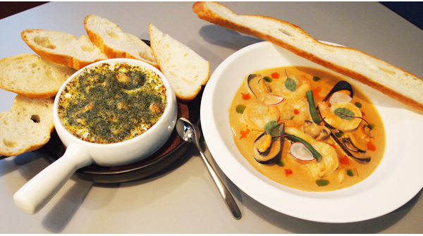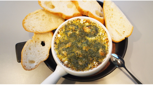 달팽이요리 전용 용기에 나오는데 오목하게 파인 그릇에 골뱅이가 하나씩 담겨있다. 맛뿐 아니라 구색까지 잘 갖춰 세심하게 신경썼음을 느낄 수 있다. 모양을 그럴듯하게 갖췄으니 먹는 것도 그대로 즐기면 될 터. 함께 나오는 바게트 빵에 얹어 먹어야 마늘버터 골뱅이의 완벽한 맛을 느낄 수 있다.