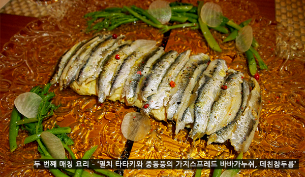 오늘 나올 요리들은 전통주의 맛 요소들과 가장 어울릴만한 요리로 고심해 매칭했으니 디너를 즐겨달라’라고 소감을 밝혔다.