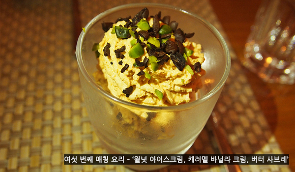 마지막 디저트는 캐러멜 바닐라 크림, 월넛 아이스크림, 버터 사브레를 쌓아 올린 ‘트라이플’이었다.