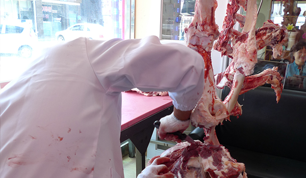 장인의 빠르고 정확한 손길은 50여 년간 셀 수 없이 많은 가축을 세밀하게 발골해 온 경험이 묻어 나온다.